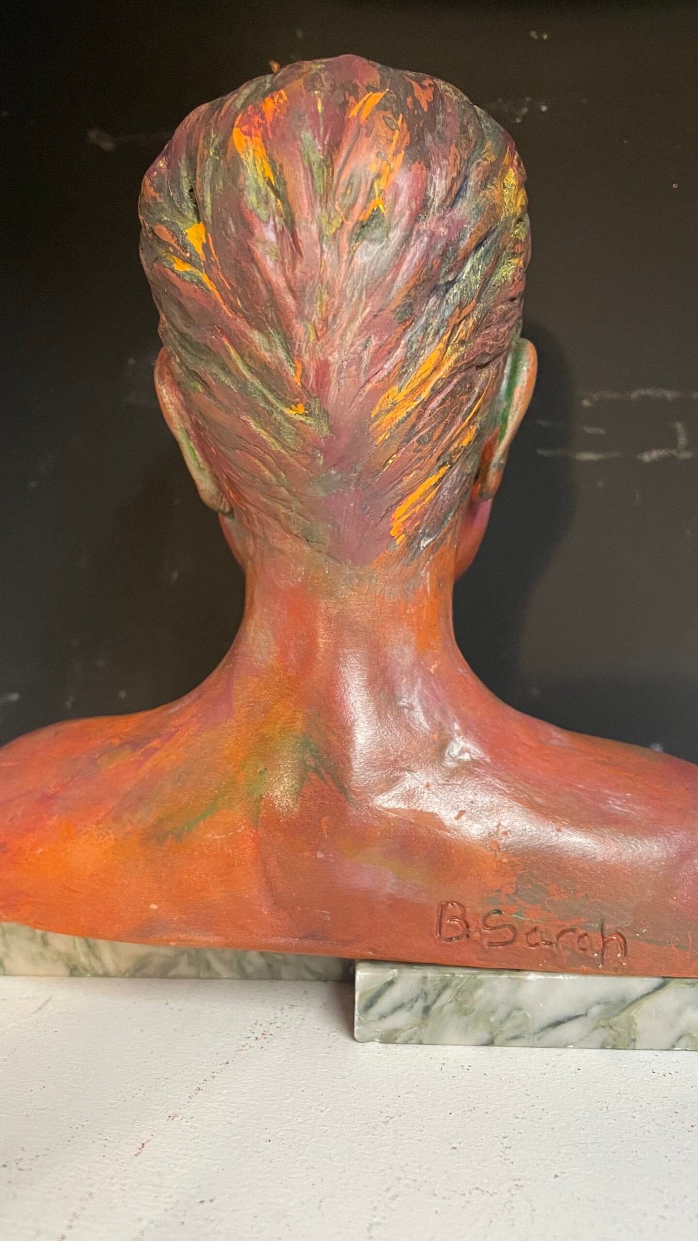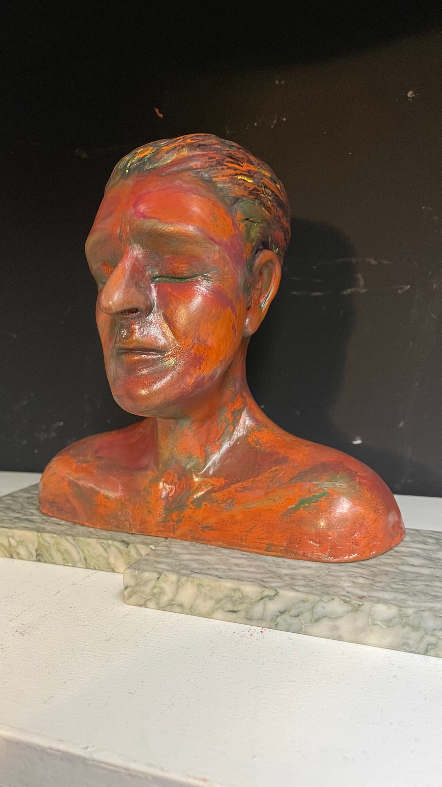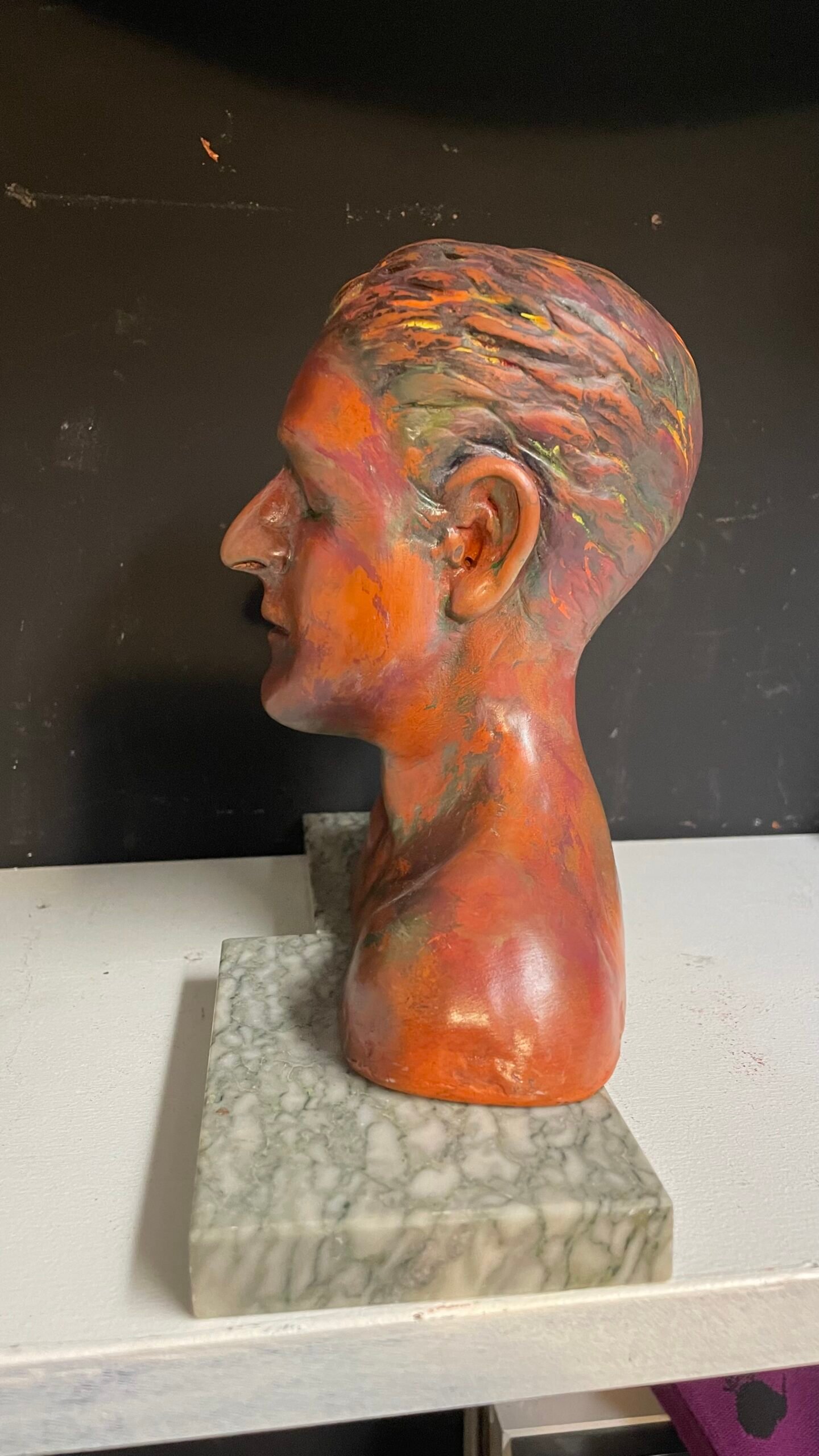 Socles (marbre recyclé) collés ensembles avec le buste.