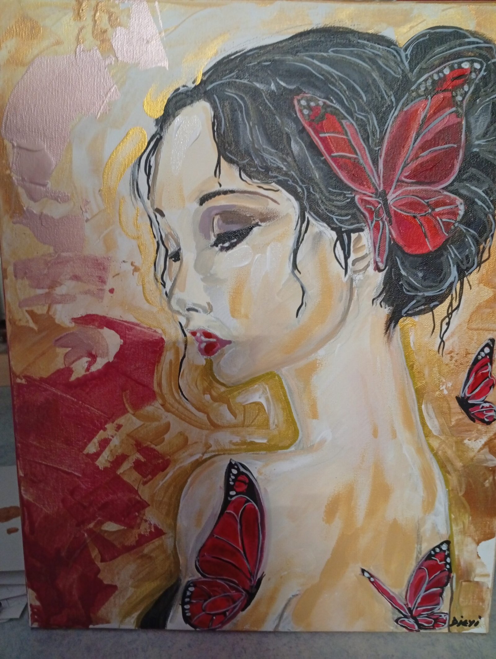 Cette toile représente la beauté , la fragilité et un moment de la vie.