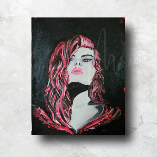 Réalisée à l’acrylique sur toile (235 mm x 300 mm), cette œuvre contemporaine s’impose par son contraste saisissant et son aura hypnotique. Pink Woman incarne la force des femmes, dans toute leur complexité et leur beauté.