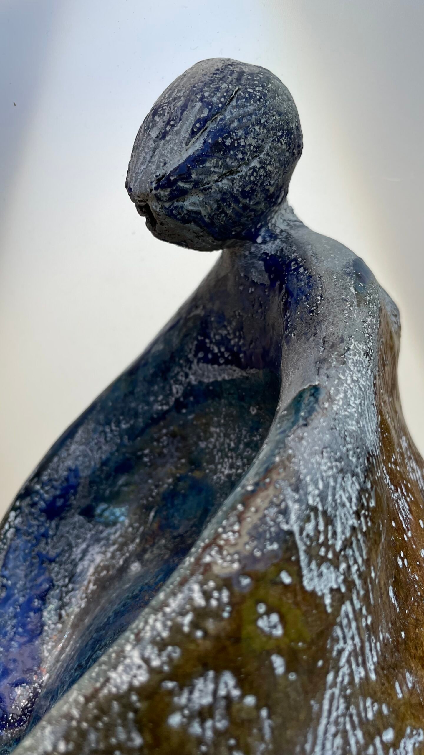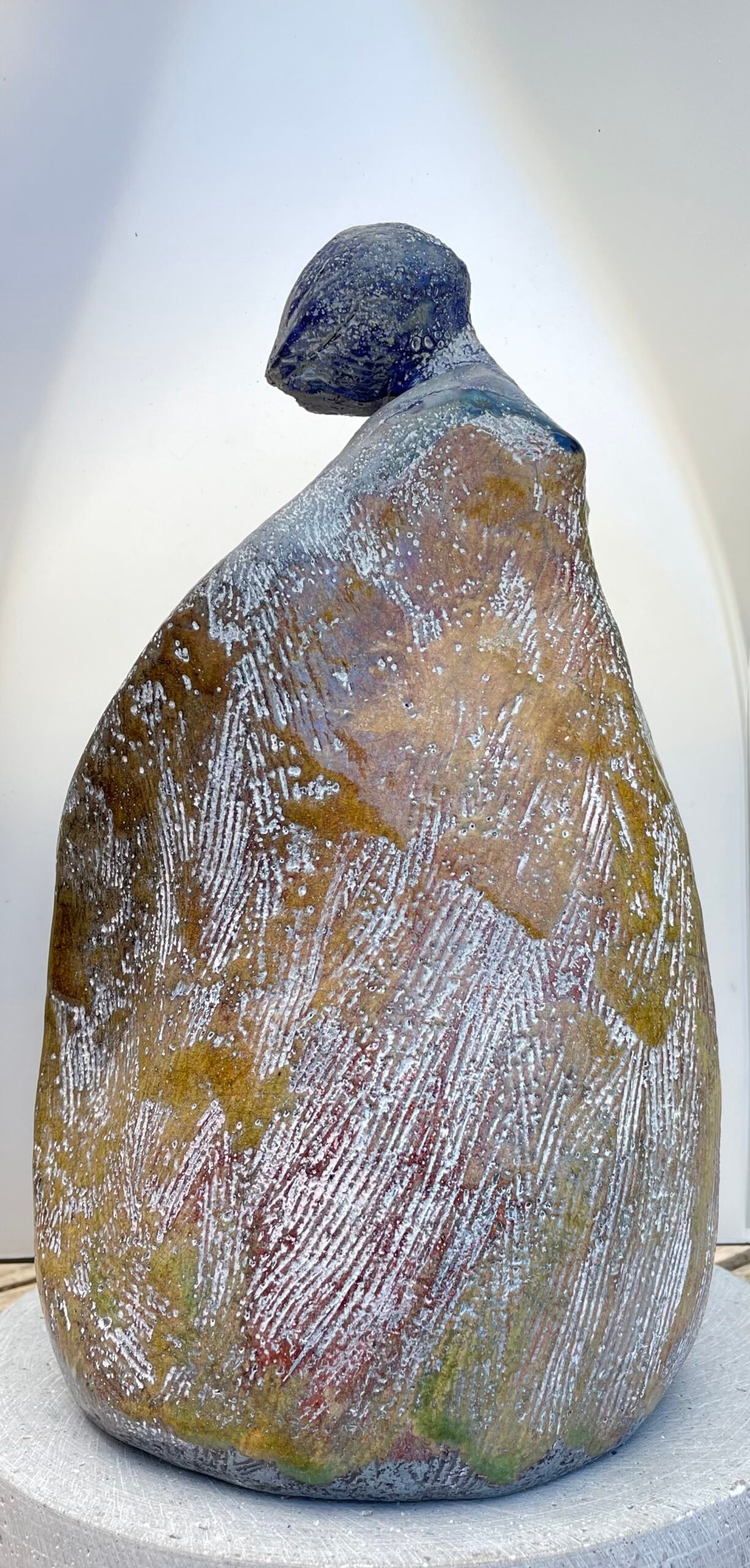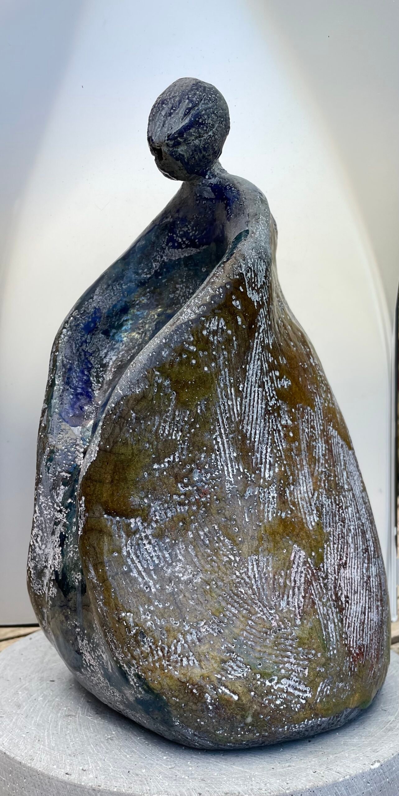 Sculpture en terre cuite blanche, émaillée en Raku.