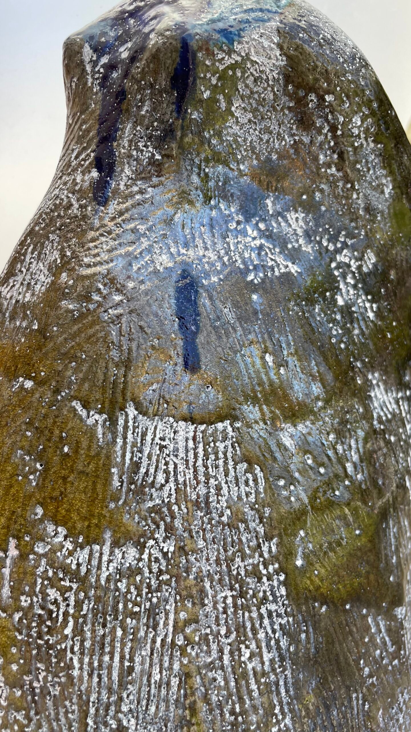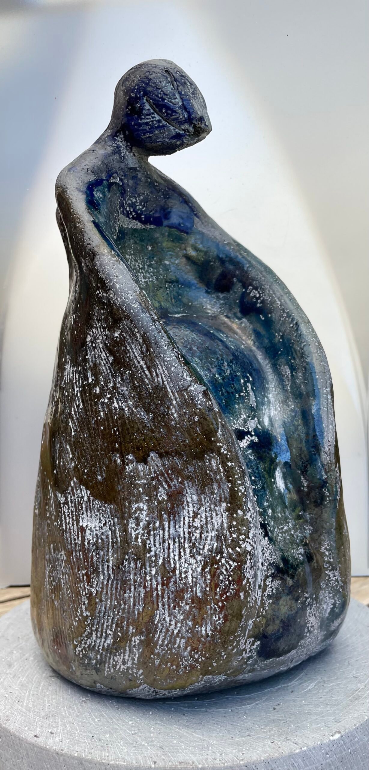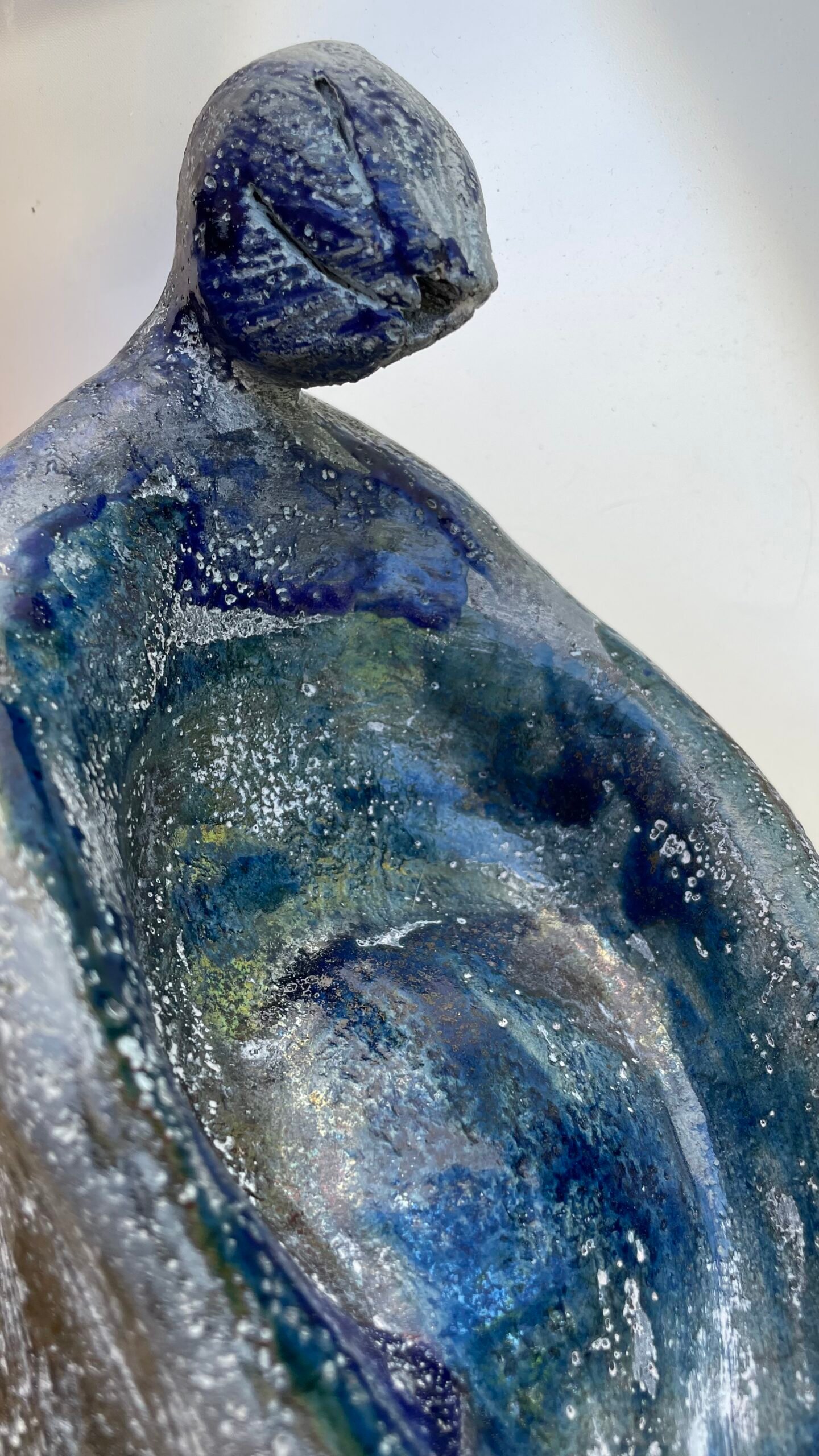 Sculpture en terre cuite blanche, émaillée en Raku.
